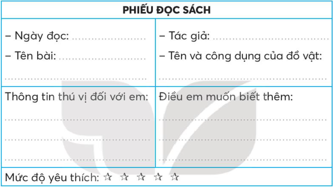 Đọc bài văn, bài thơ về đồ vật thông minh giúp con người trong công việc và viết thông tin vào phiếu đọc sách.
