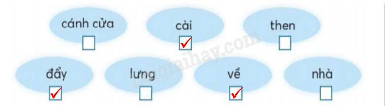 Dựa vào bài đọc, nối ý ở cột A phù hợp với nội dung ở cột B. Sắp xếp các bức tranh theo thứ tự của 3 khổ thơ trong bài đọc. Đánh dấu vào ô trống dưới từ chỉ hoạt động. Nối những từ chỉ hoạt động có thể kết hợp với từ cửa. Viết một câu về nhân vật em thích trong câu chuyện Bà cháu.