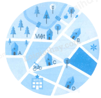 Cho hình vẽ bên. Biết nhà của Việt và nhà của Nam ở hai đường song song với nhau. Hỏi trong các ngôi nhà A, B, C, D, đâu là nhà của Nam?