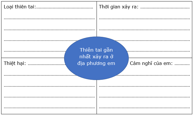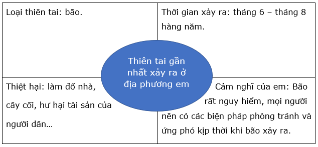 Chọn 1 thiên tai gần nhất đã xảy ra ở địa phương em mà em đã tìm hiểu được để hoàn thành sơ đồ.