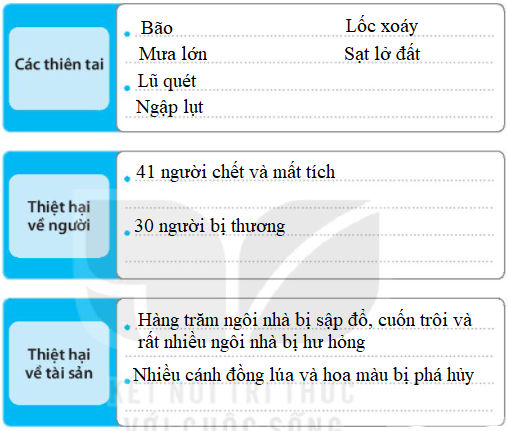 4. Đọc nội dung trang 110 SGK về thiên tai đã xảy ra ở nước ta và hoàn thành nội dung sau: