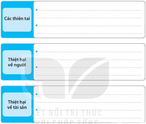 3. Viết thông tin về thiên tai em đã tìm hiểu được vào chỗ (…) trong sơ đồ dưới đây.