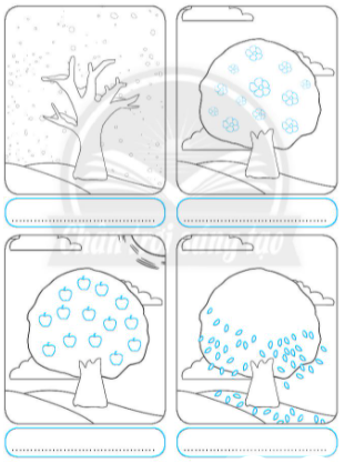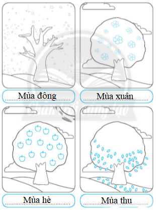 1. Viết tên mùa phù hợp vào chỗ (...) dưới mỗi hình. Tô màu hình chỉ mùa mà em thích nhất.