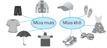 Lựa chọn trang phục phù hợp với mùa mưa và mùa khô bằng cách nối.