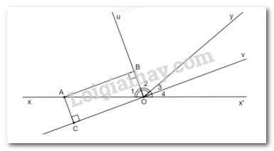 Vì Ou, Ov lần lượt là tia phân giác của \(\widehat {xOy};\widehat {x'Oy}\) nên \(\widehat {{O_1}} = \widehat {{O_2}};\widehat {{O_3}} = \widehat {{O_4}}\)