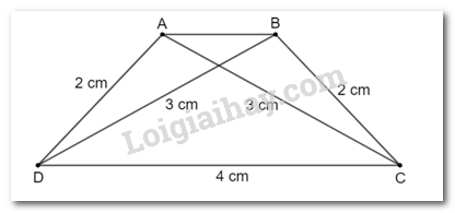 Vẽ hình thang cân ABCD (AB // CD) biết đáy lớn CD dài 4 cm, cạnh bên dài 2 cm và đường chéo dài 3 cm.