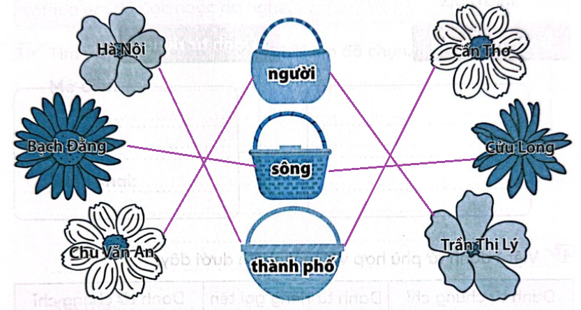 Nối các từ trong bông hoa với nhóm thích hợp.