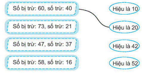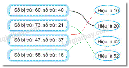 Ta lấy số bị trừ - số trừ = hiệu, sau đó nối với kết quả tương ứng cho thích hợp.