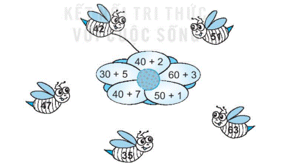 b) Tính nhẩm phép tính trên mỗi cánh hoa rồi nối với kết quả tương ứng.