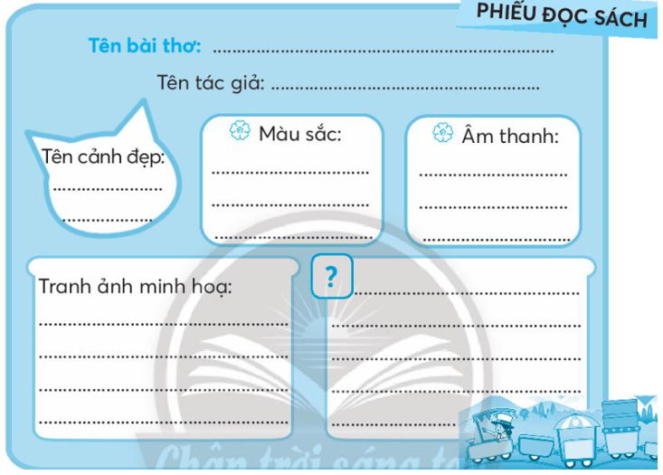 Viết vào Phiếu đọc sách những điều em ghi nhớ sau khi đọc một bài thơ về thiên nhiên.