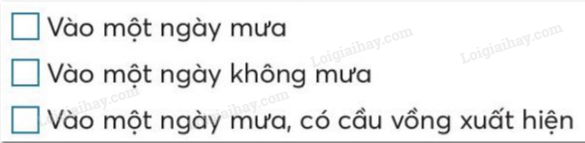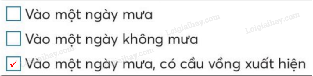 Câu chuyện trong bài đọc diễn ra vào một ngày mưa, có cầu vồng xuất hiện.