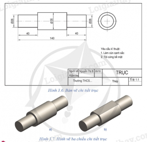 Đọc chi tiết ở Hình 3.6 theo trình tự như các bước ở Bảng 3.1 căn cứ vào kết quả đọc, hãy chọn chi tiết tương ứng cho ở Hình 3.7.