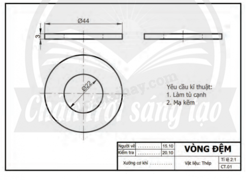 - Bản vẽ tấm đệm được vẽ theo tỉ lệ nào vật chế tạo là gì?