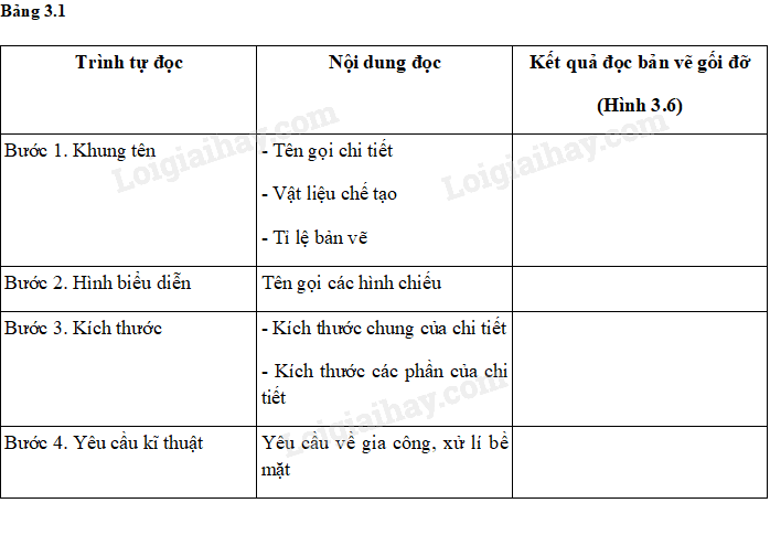 Quan sát hình 3.6 và bảng 3.1 để đọc các nội dung theo bảng 3.1
