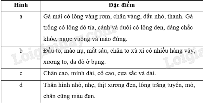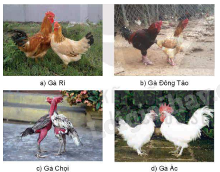 Quan sát Hình 3.1 và mô tả các đặc điểm ngoại hình đặc trưng của các giống gà.