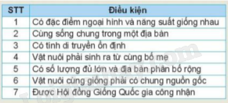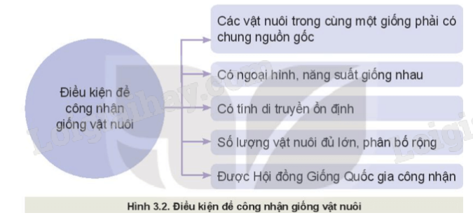 Quan sát Hình 3.2 và cho biết để được công nhận là giống vật nuôi thì cần có những điều kiện gì?