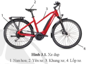 Hãy cho biết vật liệu của một số bộ phận xe đạp ở hình 3.1