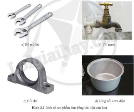 Hãy chỉ ra sản phẩm được làm từ gang, thép, hợp kim nhôm, hợp kim đồng ở hình 3.3.