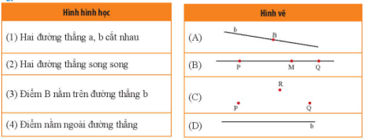 Tìm và nối một hình vẽ tương ứng với mỗi khái niệm hình hình học.