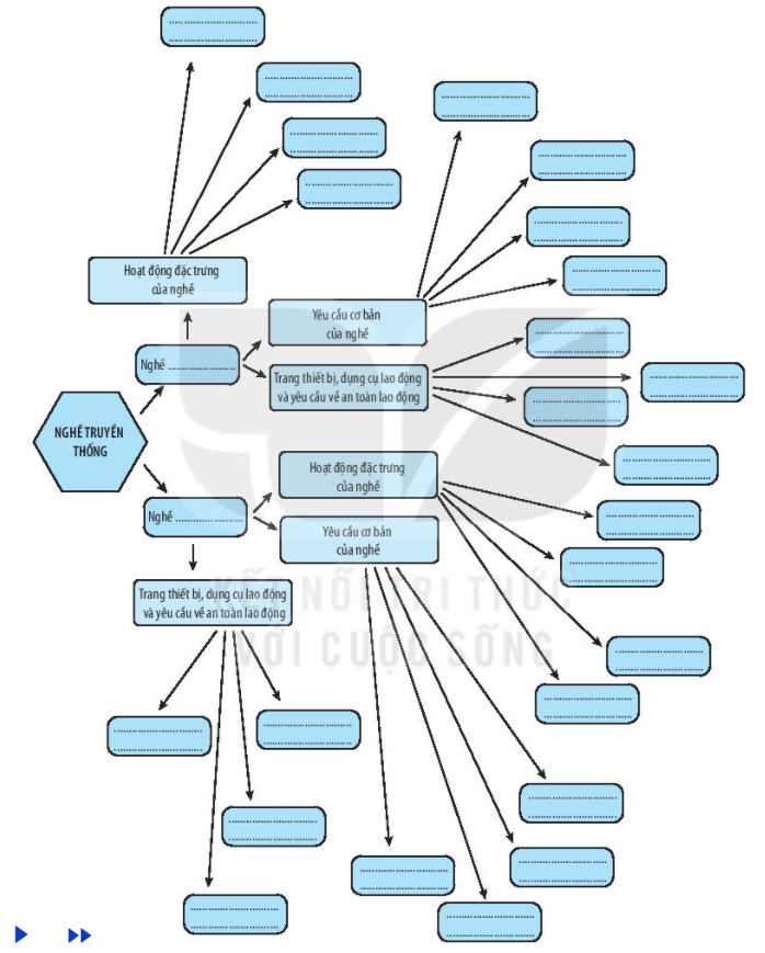 Hãy điền những thông tin em và các bạn trong lớp đã tìm hiểu, khám phá được về nghề truyền thống vào sơ đồ tư duy sau: