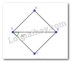 Cho hình thoi ABCD có \(\widehat {C{\rm{D}}B} = {40^o}\). Tính số đo mỗi góc của hình thoi ABCD.