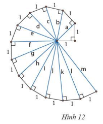 Lần lượt tính độ dài các cạnh huyền \(a\), \(b\), \(c\), \(d\) của các tam giác vuông trong Hình 12. Hãy dự đoán kết quả của các cạnh huyền còn lại.