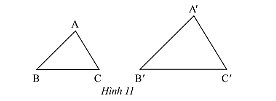 a) Trong Hình 11, cho biết \(\Delta ABC\backsim\Delta A'B'C'\). Viết tỉ số của các cạnh tương ứng và chỉ ra các cặp góc tương ứng.