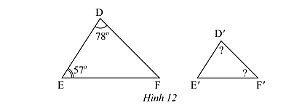 Do đó, \(\widehat D = \widehat {D'} = 78^\circ ;\widehat F = \widehat {F'} = 45^\circ \).