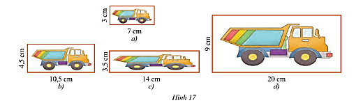 Tỉ lệ của chiều dài – chiều dài và chiều rộng – chiều rộng của hình 17a và hình 17b lần lượt là: