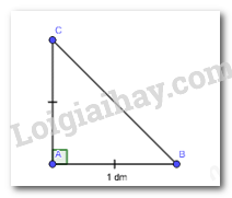 \(\begin{array}{l}B{C^2} = A{B^2} + A{C^2} = {1^2} + {1^2} = 2\\ \Rightarrow BC = \sqrt 2 dm\end{array}\)
