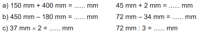 Thực hiện tính rồi điền kết quả thích hợp vào chỗ chấm.