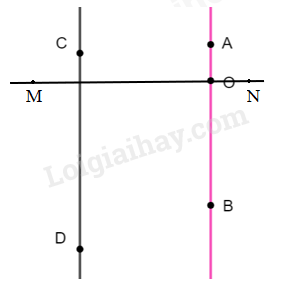 - Vẽ đường thẳng AB đi qua điểm O và vuông góc với đường thẳng MN ta được đường thẳng AB song song với đường thẳng CD