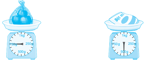 Quan sát bức tranh rồi điền cân nặng thích hợp vào chỗ chấm.