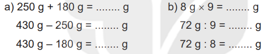 Ba quả cam cân nặng .... g. Trong lọ có 1 kg đường. Mẹ đã lấy ra 2 lần ....