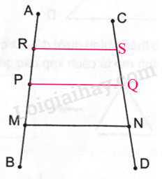 Vẽ đoạn thẳng PQ và đoạn thẳng RS song song với đoạn thẳng MN (Q và S nằm trên đoạn thẳng CD) để hoàn thành hình vẽ cái thang dưới đây.