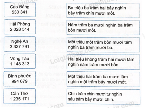 Nối số dân (theo Nhà xuất bản Thống kê năm 2019) với cách đọc số đó.