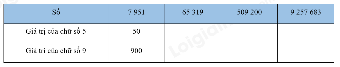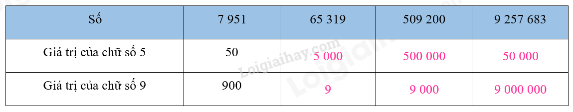 - Xác định hàng của chữ số 5 và chữ số 9 trong mỗi số đã cho