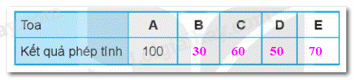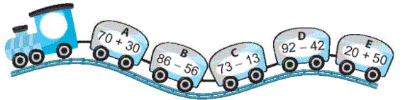 - Những toa ghi phép tính có kết quả lớn hơn 50 và bé hơn 100 là toa C và toa E.