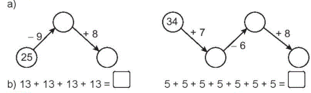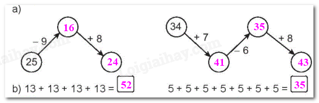 Tính nhẩm kết quả các phép tính theo chiều mũi tên rồi điền số vào ô trống cho thích hợp.