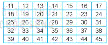 a) Số lớn nhất trong bảng là 45, số bé nhất trong bảng là 11.