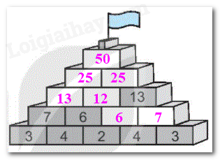 Quan sát tranh ta thấy mỗi số ở hàng trên bằng tổng hai số ở hàng dưới. Từ đó ta điềm tiếp các ô trống còn thiếu.