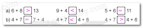 Tính nhẩm kết quả các phép tính rồi so sánh hai vế và điền dấu thích hợp vào ô trống.