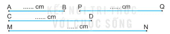 Dùng thước kẻ để đo độ dài mỗi đoạn thẳng rồi điền tiếp vào chỗ trống.