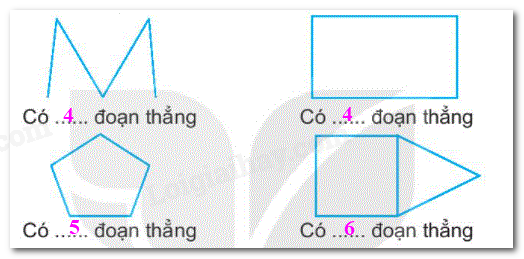 Đếm số đoạn thẳng có trong mỗi hình rồi điền số thích hợp vào chỗ chấm.