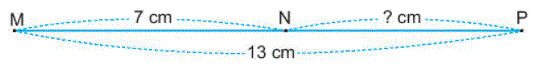 a) Độ dài đoạn thẳng NP là 13 cm – 7 cm = 6 cm.