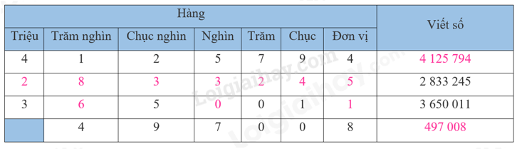 Viết số hoặc (đọc số) theo từng lớp, lần lượt từ lớp triệu, lớp nghìn, lớp đơn vị