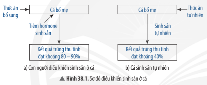 + Ở hình 38.1 a cá được cho ăn các thức ăn bổ sung và sử dụng hormone