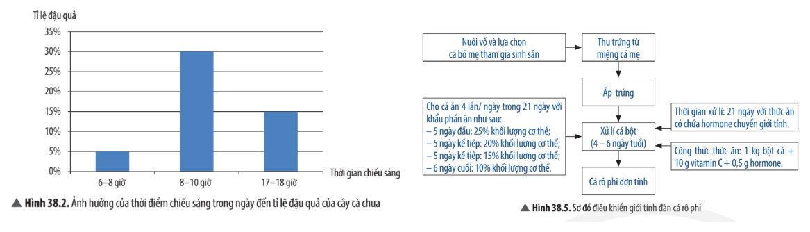 - Hình 38.2 thể hiện ảnh hưởng của ánh sáng đến sự sinh sản của sinh vật.