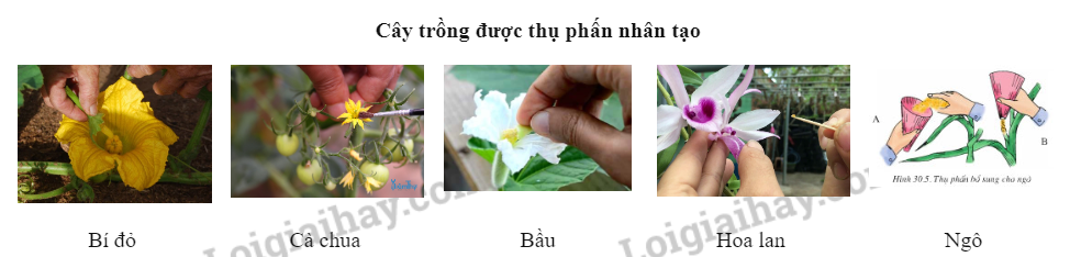 Lấy ví dụ về một số loài cây trồng thường được thụ phấn nhân tạo và thụ phấn nhờ côn trùng. |