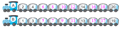 Đếm thêm 2 đơn vị và viết số thích hợp cho các ô còn thiếu.
